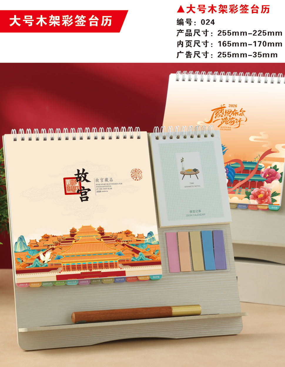 实木带笔筒台历