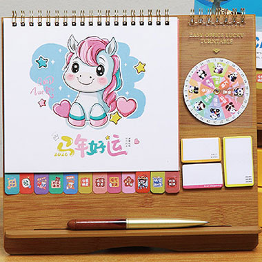 实木带笔筒台历